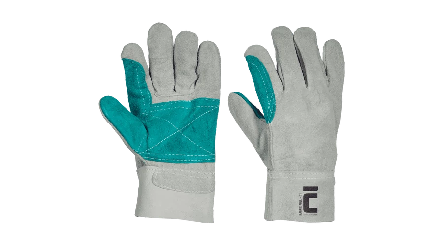 Marha hasított bőr védőkesztyű, dupla réteg a tenyéren és a hüvelyken.