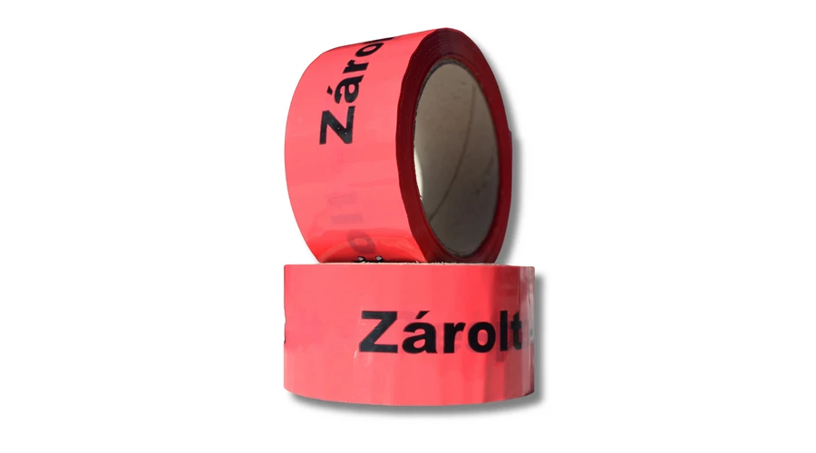 Ragasztószalag zárolt, piros alapon fekete, 50mmx66m