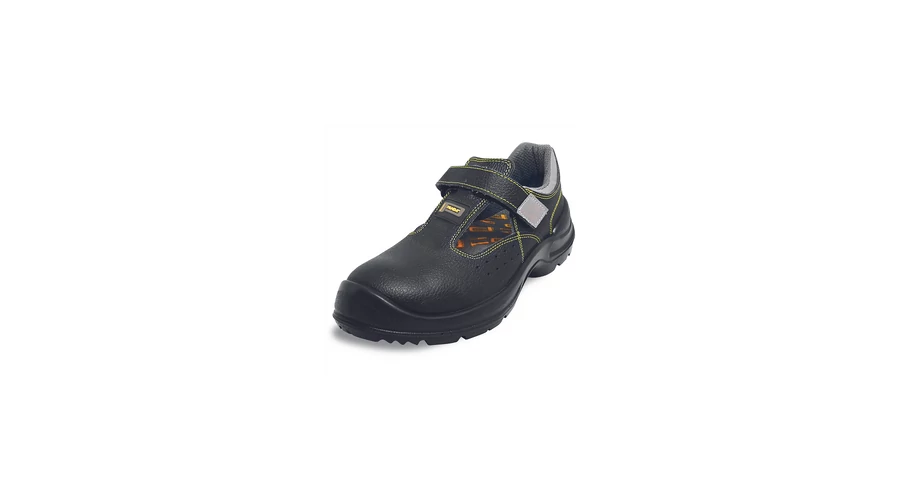 Biztonsági szandál fémmentes lábujjvédővel és átszúrás ellen védő köztalppal, PU/TPU talppal. A felső rész kiváló minőségű nubuk bőr. Tépőzáras rögzítés biztosítja a tökéletes rögzítést munka során.